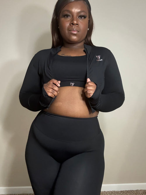 3-piece set includes: jacket, bra and leggings.
